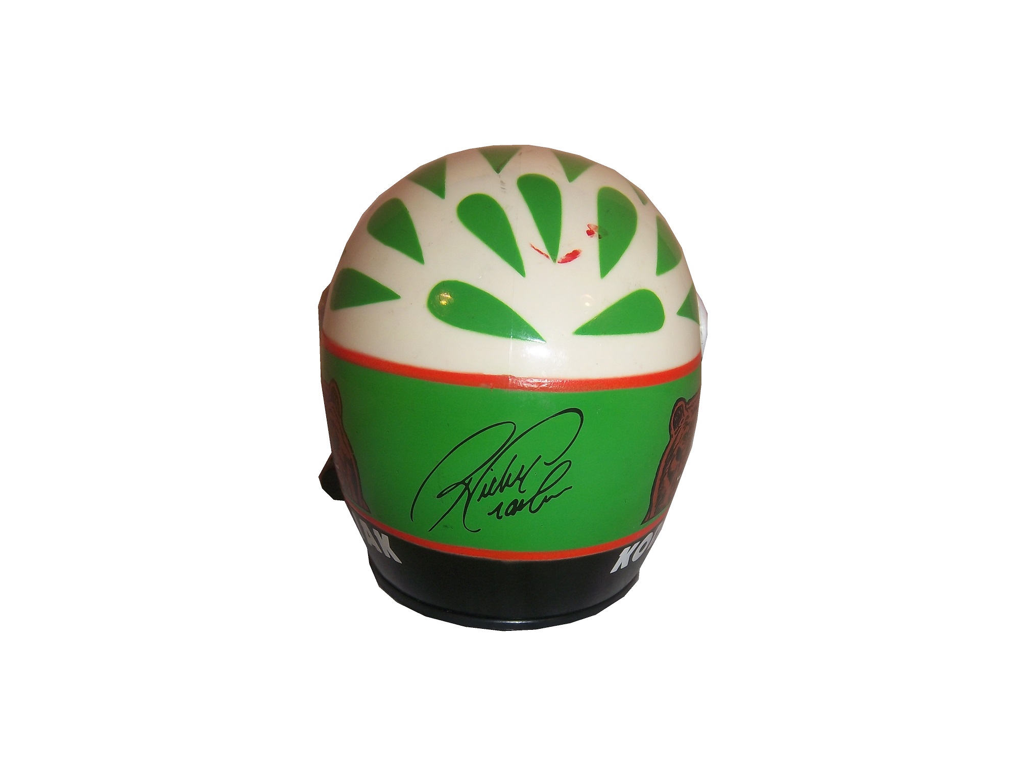 It needs an explanation…The suit was worn for the entire 2002 season, which had a Siemens sponsorship for the first 25 races. After Siemens left the team, Scott Wimmer went on to win 4 of the next 9 races in an unsponsored black car with red and yellow flames…while wearing this suit.