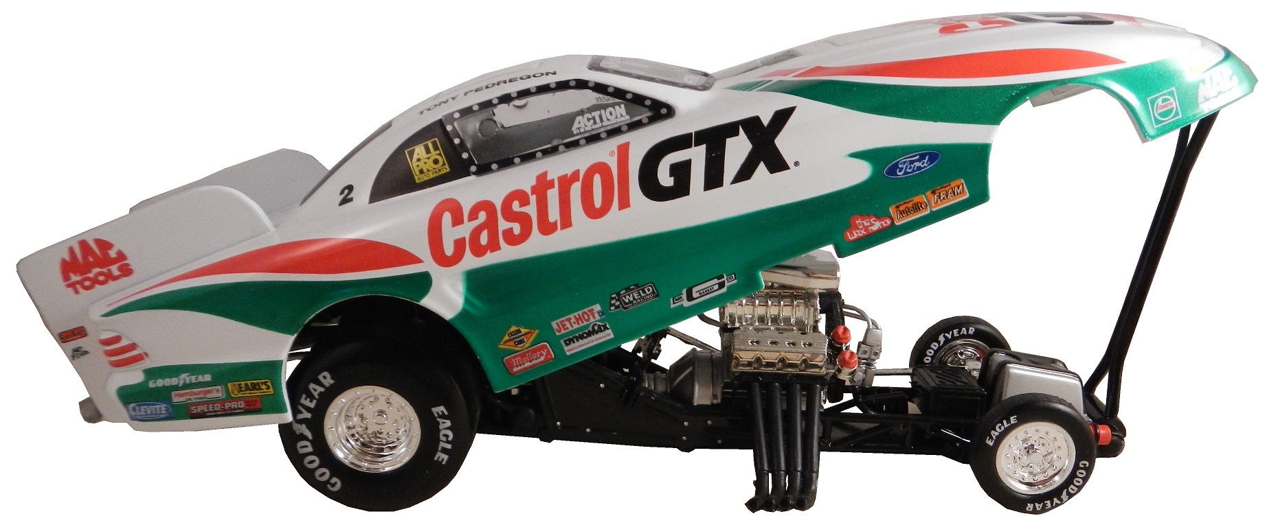 Also from 1997, this Tony Pedregon 1:24 funny car die cast, with a body that is removable