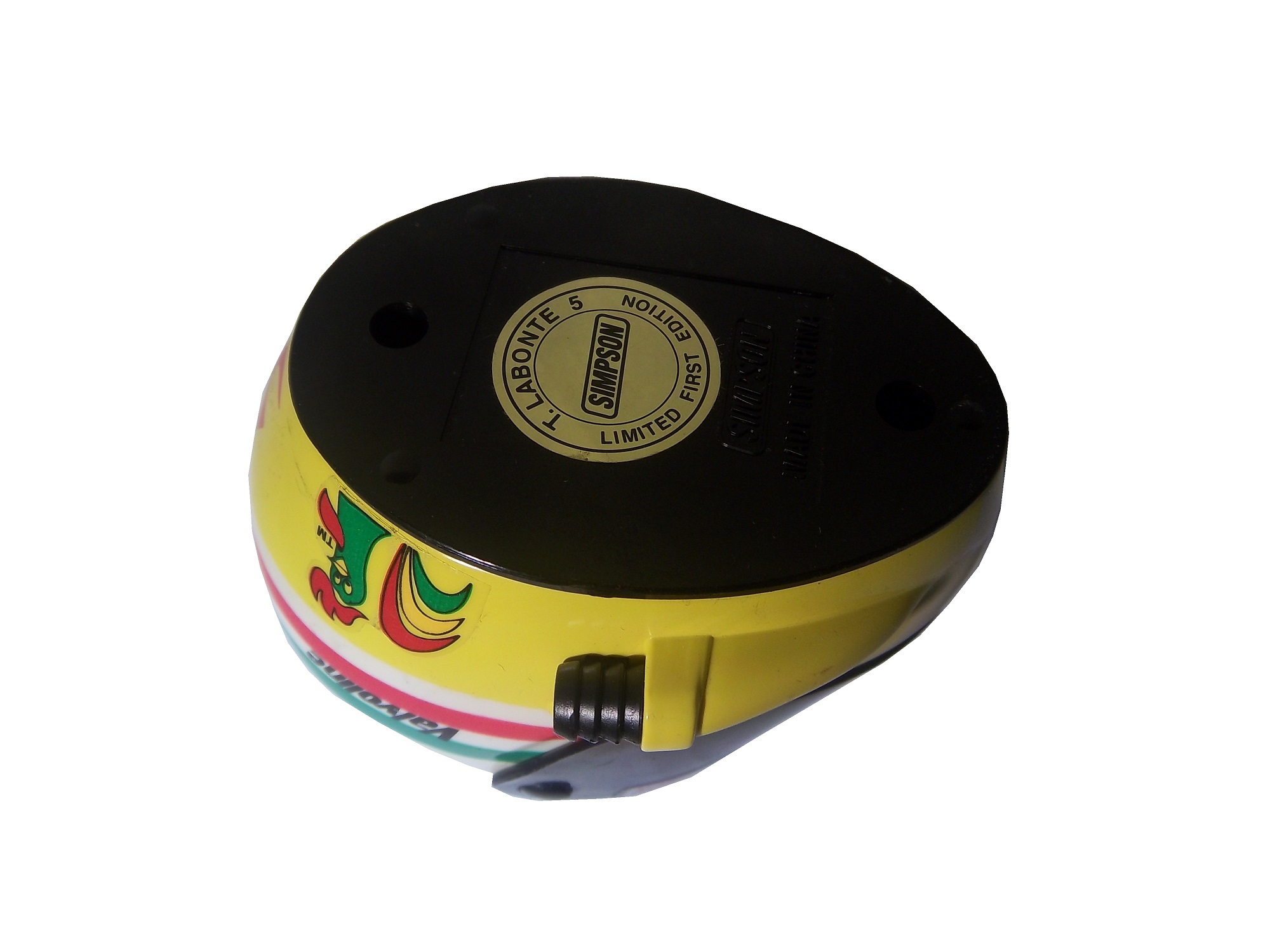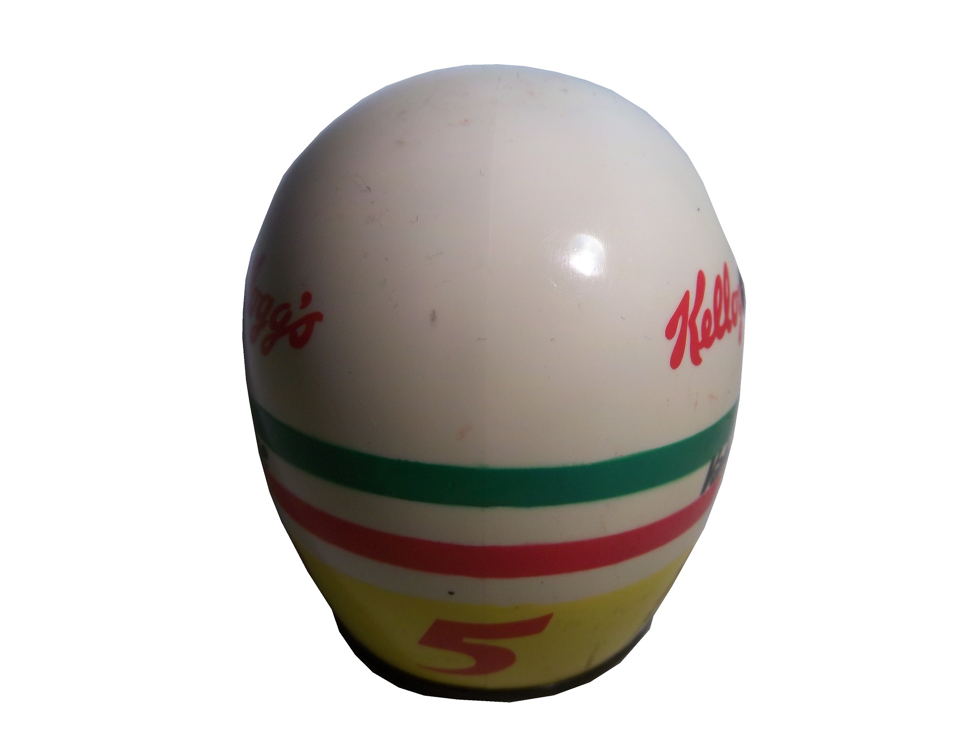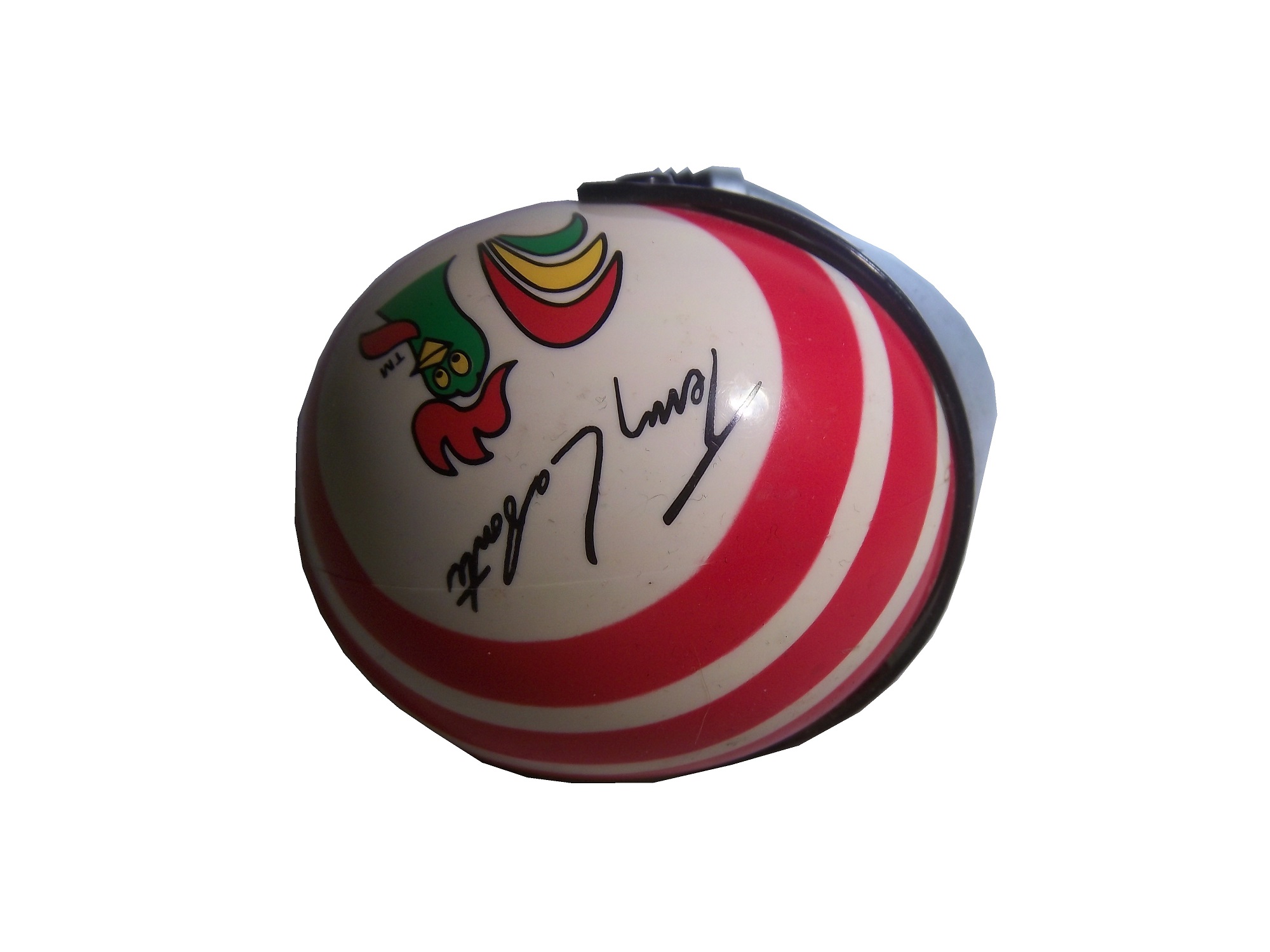 It’s not as elaborately designed as the Simpson models, but it is a nice looking piece. The visor is locked in the down position, and doesn’t seem to be the same design as his race helmet. The inside is hollowed out, and the inside is plain plastic. An inexpensive helmet like this would be great to get signed. It would also be a great promotional tool, that’s what is was used for. Seriously, what fan wouldn’t like an autograph from their favorite driver on one of these?
