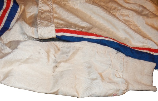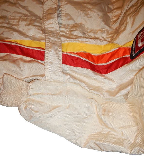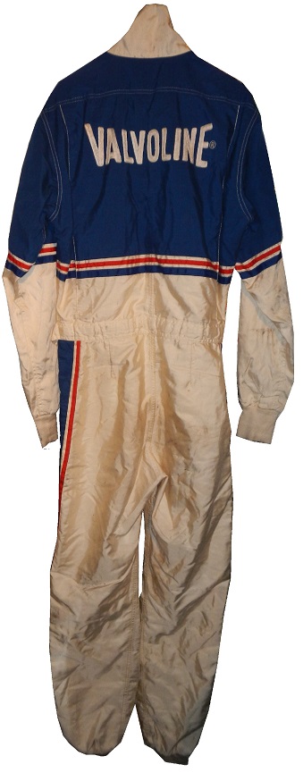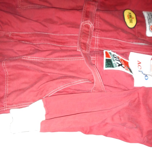 The third driver suit is a Budweiser driver suit from 1990. At this point he was racing in the NHRA and was sponsored by Budweiser. He raced an Oldsmobile, and had a number of sponsors. The suit is in good condition.