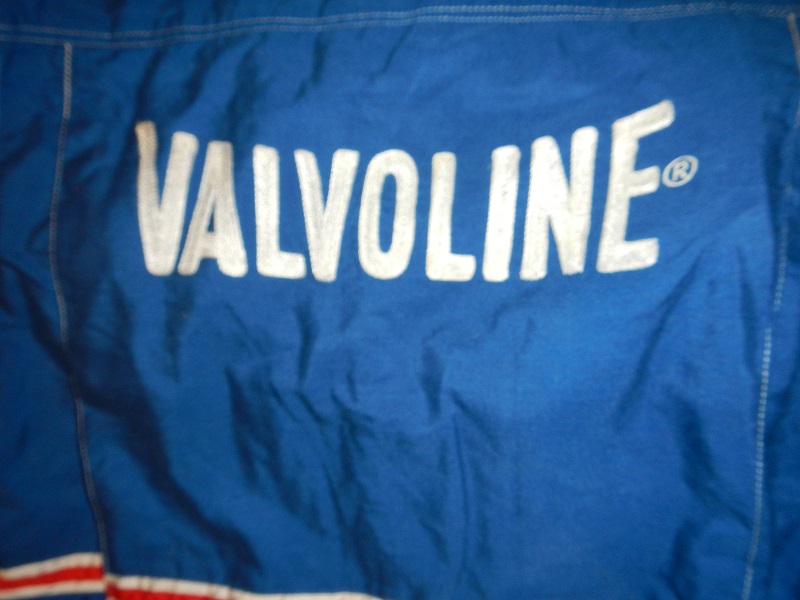 The right sleeve has a VALVOLINE patch on the blue, but no other logos present.