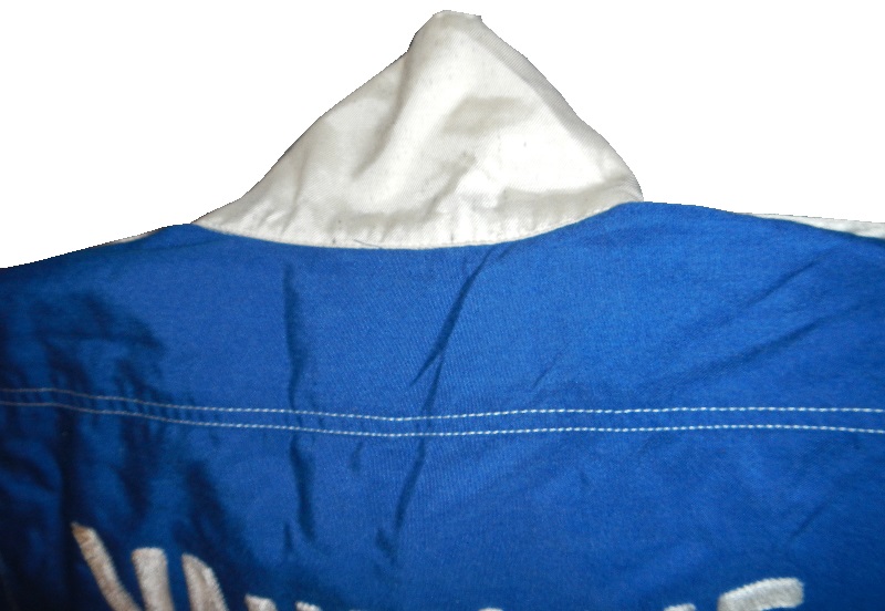 The back torso has the same vertically arched VALVOLINE logo in attractive chain stitching on the back on the blue section of the suit.