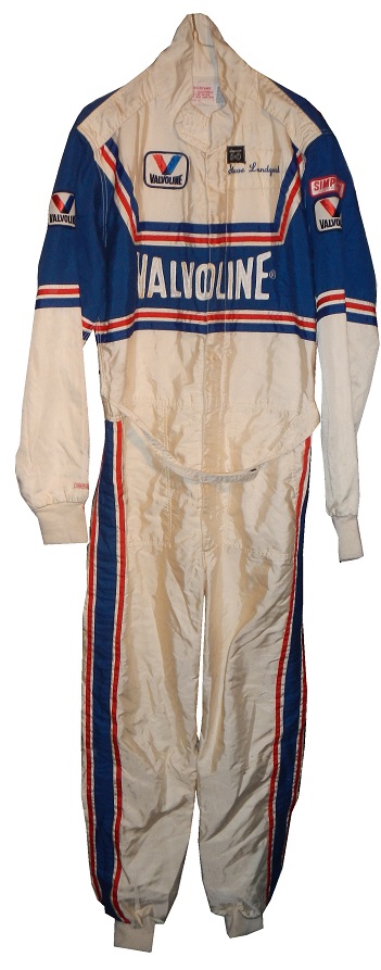 In 1986, at some point, Lundquist race with Valvoline as a sponsor. Where or when he raced is not known, but during that time he wore this suit and helmet.