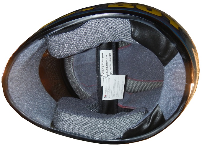 The Mark Martin helmet is great because it really looks like what Martin used to wear in the 1990’s when he was sponsored by Valvoline. The details are good, and the visor stripe is accurate too. One thing I noticed is that on the bottom, it states that Roush Racing was, at the time this helmet was made, located in Livonia Michigan. I never knew that. Apparently, the team was originally a small piece of Roush Enterprises, but has since grown into a racing powerhouse.