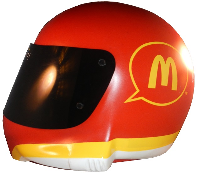 Bill Elliott was sponsored by McDonald’s and the motif looks like a real McDonald’s helmet. McDonald’s has a really good shade of red, and it is frequently used on the helmets of the drivers they sponsor. This example really does look like a race helmet, though I don’t know who Serengeti, the visor stripe sponsor is though.elliott-1-1 elliott-1-2 elliott-1-3 elliott-1-4 elliott-1-5 elliott-1-6