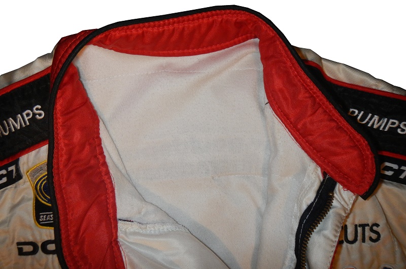 This SFI 5 rated triple layer driver suit is in good condition, and doesn’t show much use, not shocking for a suit worn for only two races.