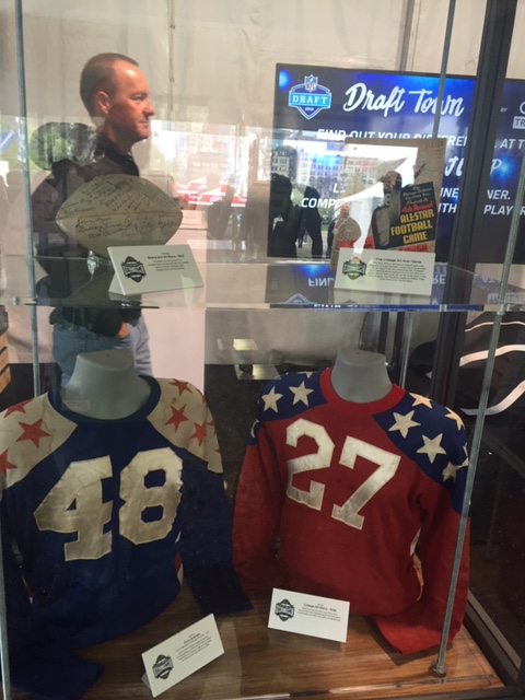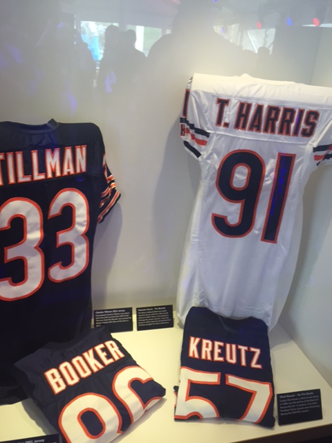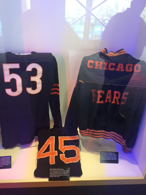 I wanted to see what kinds of uniforms and memorabilia would be on display. My first stop was the NFL Museum. One of the biggest displays was a history of the Chicago Football Uniform, including the Chicago Cardinals, and a history of Chicago Bears game-used uniforms, including the rare 1992 throwback.