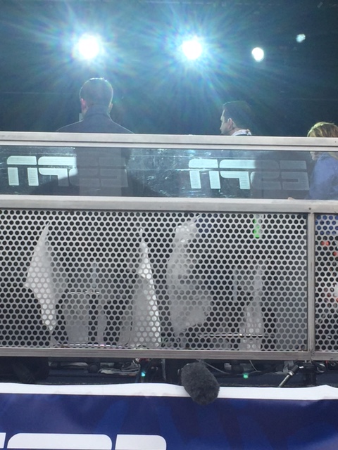My next stop was the area next to Buckingham Fountain, where I watched the ESPN live broadcast. It’s important to note that the weather was awful, mid 40’s, and I noticed that two of the male anchors had blankets on their laps due to the weather.