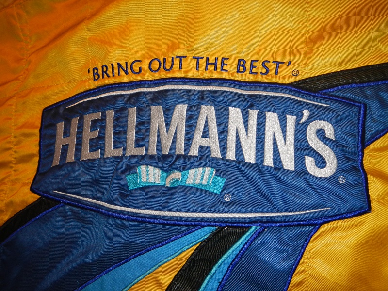 The back logo features a HELLMANN’S logo, along with the same odd blue stripe, though in reverse.