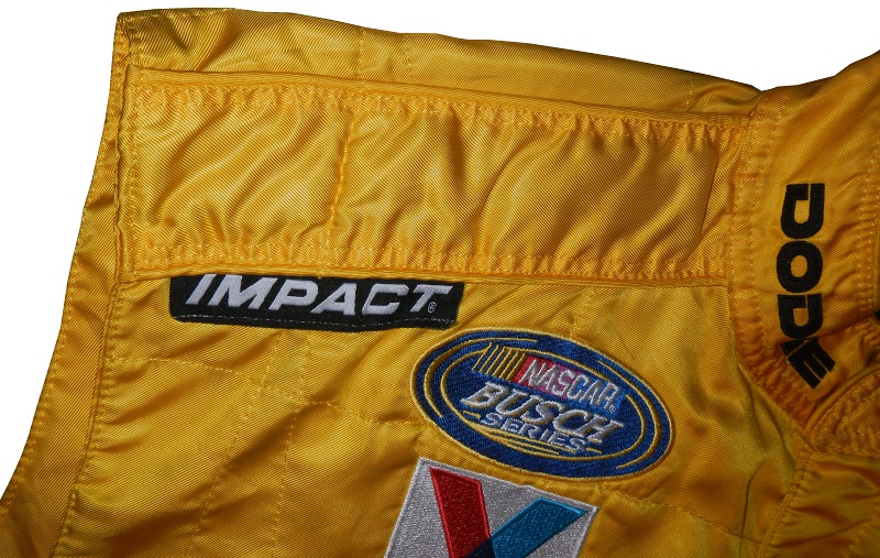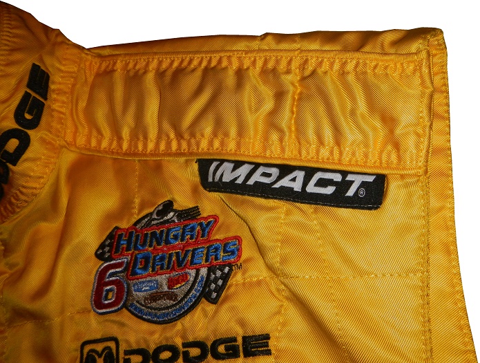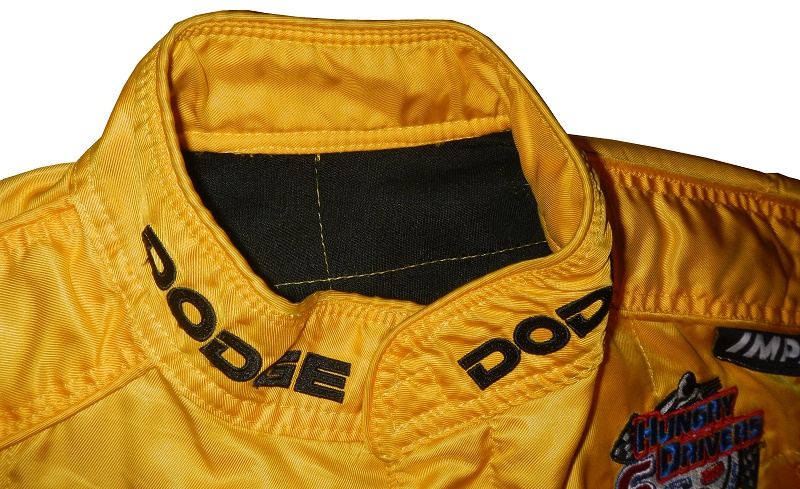 The collar has black DODGE logos on the yellow material. I’ve also noticed the black internal material which I haven’t seen that much in racing suits.