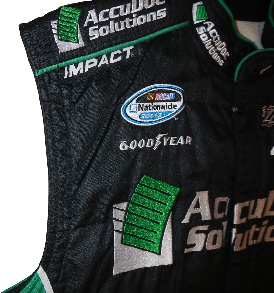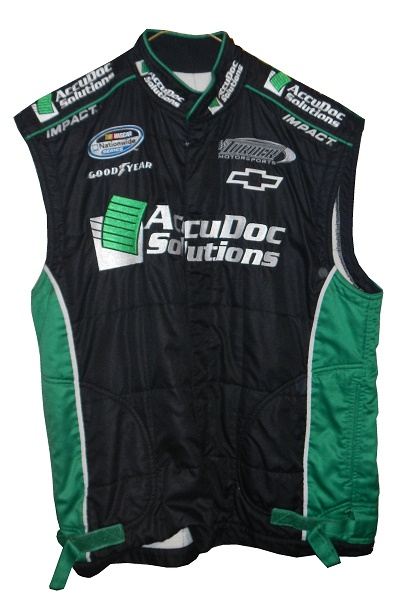 AccuDoc has sponsored Turner and Turner-Scott cars since the beginning. Since Turner acquired Braun Racing, they have run a number of different manufacturers. Sometimes it can be difficult to figure out when a crew suit was used due to this. Turner switched to Chevy from Toyota during the 2010 season, and at in 2011, this AccuDoc Solutions vest was prepared for a crew member.