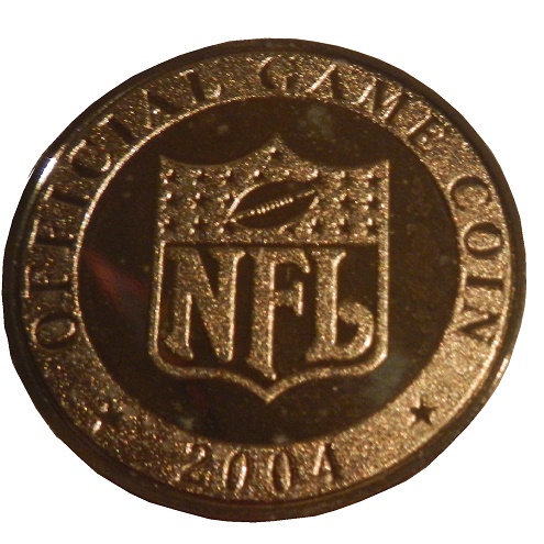 The back of the coin features the pre-2007 NFL shield, and has OFFICIAL GAME COIN 2004 stamped into it.