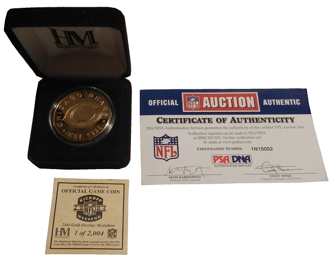 The Highland Mint Bears coin isn’t of the Opening Day variety commonly used, but comes with a box, and full PSA/DNA authentication