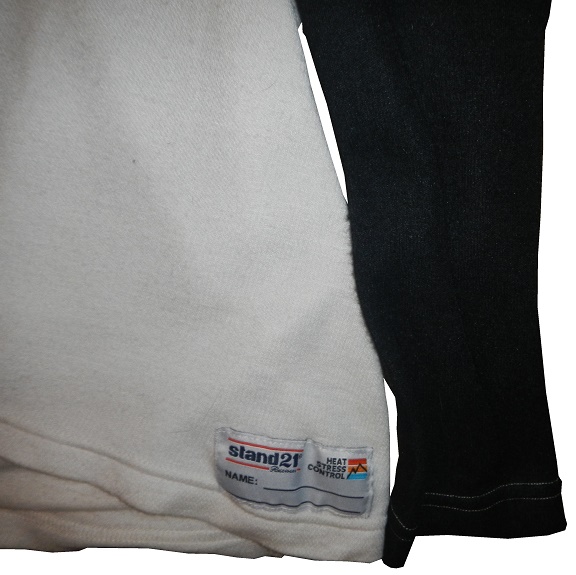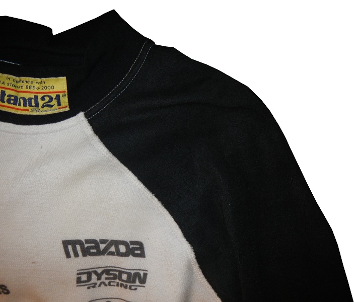 The thick front collar has a Stand 21 tag sewn into it. The tag has the FIA Certification as well as the Stand 21 logo.