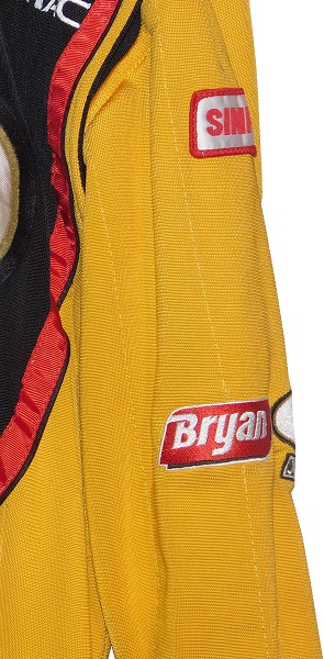 The left sleeve features a Simpson patch at the top, a BRYAN logo and a JIMMY DEAN logo embroidered into it. There are no logos in television position present.