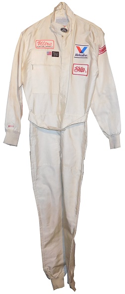 This is the second pit crew suit, worn between 1994-1995. Unlike the previous suit, this one is made of Nomex, but isn’t SFI certified.