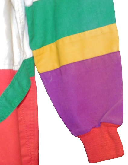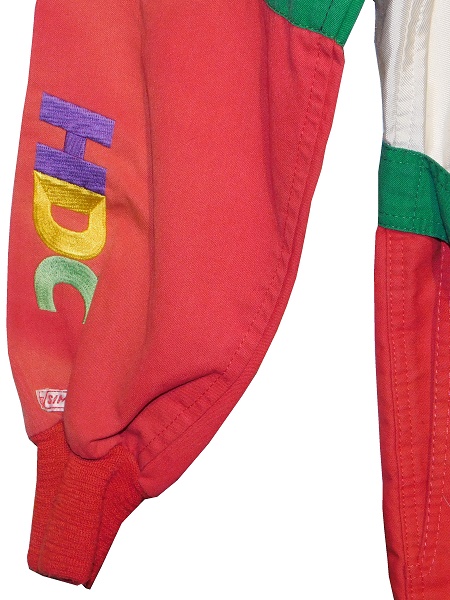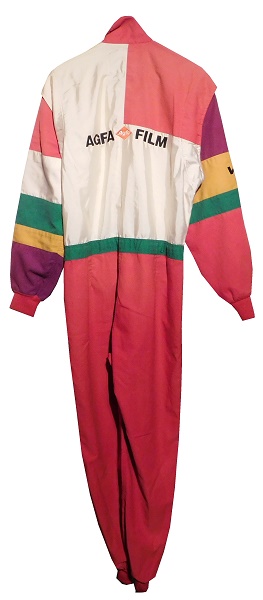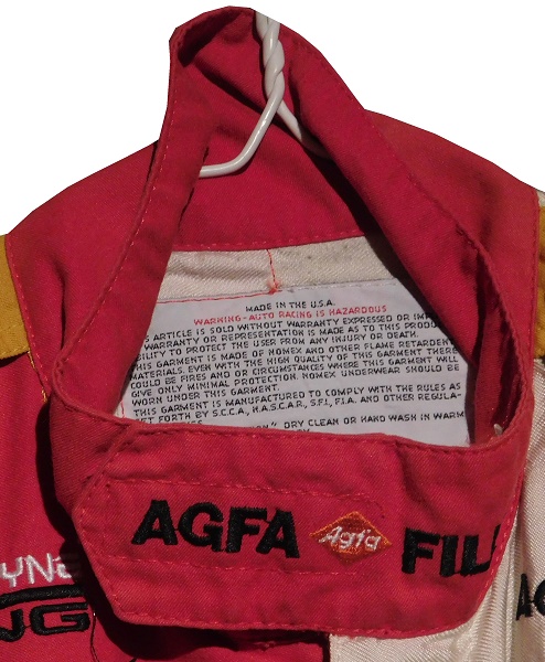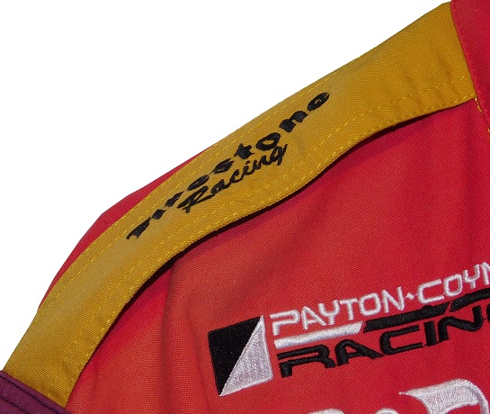 and driven by by Éric Bachelart, Buddy Lazier, Ross Bentley, and Franck Fréon. The #34 Ford was sponsored by Mi-Jack and was driven by Alessandro Zampedri. The #19 scored a top 10, while the #34 scored three top 10’s. During that season, one #19 crew member wore this AGFA suit.The single-layer suit shows very light wear.The collar has a Velcro-closure, with AGFA-FILM logo embroidered into it.The standard Simpson warranty label is sewn into the cowl, and a 5/95 flag tag is present, indicating the date of manufacture.The right chest features a PAYTON COYNE RACING logo, a PPG logo, and an INDYCAR RACING logo embroidered into it.The left chest features AGFA-FILM, MI-JACK, WHALEMAN, and FORD COSWORTH logos embroidered into it.The front torso has no sponsor logos to speak of.The red belt is unadorned.The legs are unadorned, and have standard cuffs.The shoulders feature FIRESTONE RACING logos embroidered in black, on the yellow material.The right sleeve features a VALVOLINE logo embroidered into the upper area, and an HDC logo embroidered into television position. The shoulders feature FIRESTONE RACING logos embroidered in black, on the yellow material.The left sleeve has a SIMPSON logo, an HDC logo, and a VERNON AND SONS INC. embroidered on the upper sleeve, and nothing in television position. The rear of the suit shows no real wear to speak of.The back of the neck is unadorned.The back torso has an AGFA-FILM logo embroidered into it.Walter Payton may no longer be with us, but his memory will never be extinguished. He is one of, if not the first NFL player to own a racing team, something which has become a bit more commonplace in recent years. He is also one of the few minorities who was involved in motorsports, something that, again, is thankfully becoming more commonplace. He was a man of character, and a driven man. He will be missed, and the team he helped out is still going strong to this day.