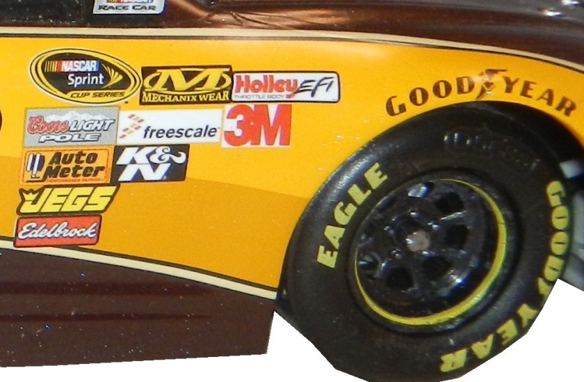 This transfers over to the die cast models. This is an example of a Carl Edwards model, vs a picture of the real thing.