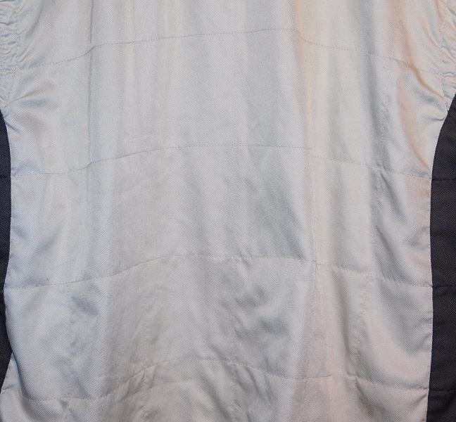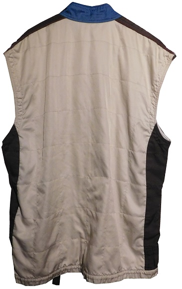 Front Row’s efforts in the Xfinity Series weren’t great. Their driver lineup for that time period was Eric McClure for 32 races and Brian Simo for 3 races in the number 24 Chevy 2008. For the following season, Tony Raines was in the # 34 Chevy for all 35 races in 2009. Jeff Green, Kevin Hamlin and Johnny Sauter each ran a few races each in the #36 Chevy in 2010. Their efforts resulted in a top 5 and three top 10’s, as well as three laps led during that time. A couple of members of the Front Row pit crew wore this vest during that time.The vest shows heavy wear, in the form of a lot of stains and some scuff marks from race-use.
