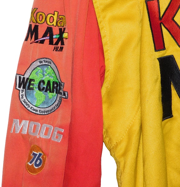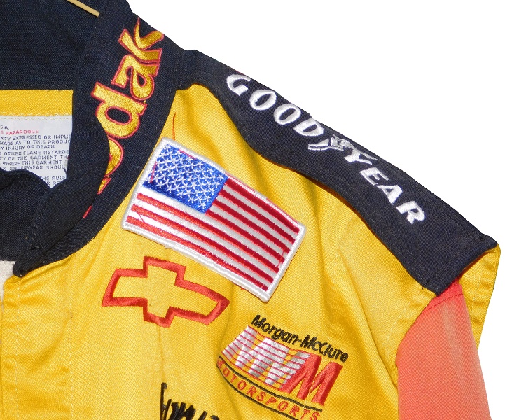 The right sleeve has KODAK MAX FILM, SAFETY KLEEN, MOOG, and UNOCAL 76 logos embroidered into them, no logos in television position are present.