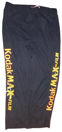 The left leg has a KODAX MAX FILM logo in television position, and the cuff shows light wear.