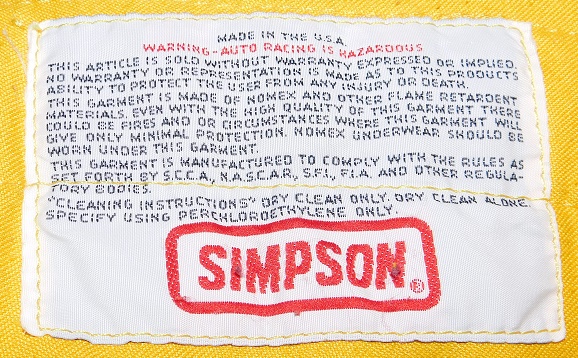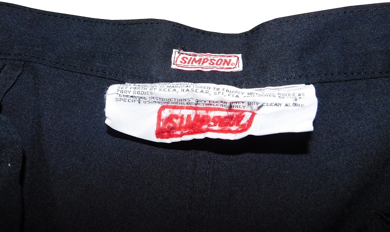 The back of the pants have a SIMPSON warranty tag present, and it shows a lot of wear.