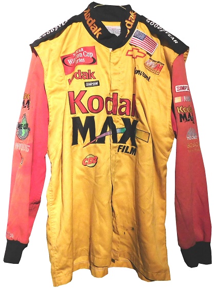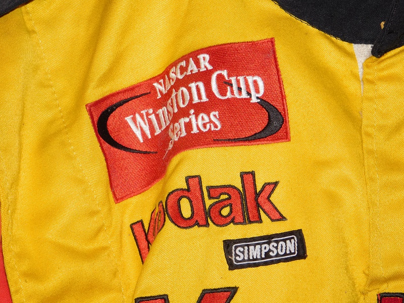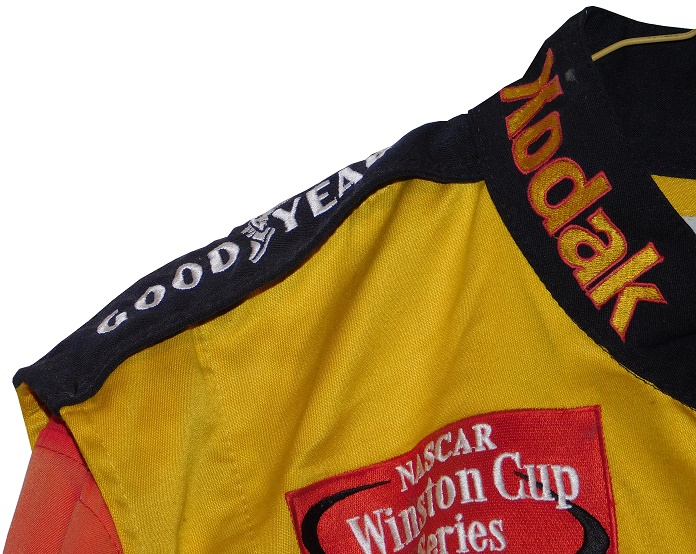 The right chest has a NASCAR WINSTON CUP SERIES logo, and a KODAK logo embroidered into it, and a SIMPSON patch sewn into it.