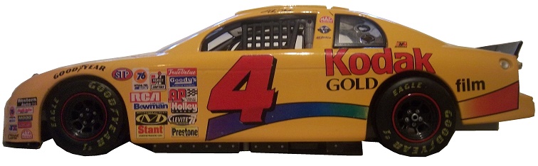 One of my favorite sponsors of NASCAR during the 1990’s was Kodak. When we bought camera film, we would always by Kodak film. They had one of my favorite shades of yellow ever. It is a marigold yellow, as opposed to the bright yellows used by sponsor such as Kellogg’s. This shade of yellow gave the car a very bold look, without being over-designed. This sponsorship started in 1986 with the Bobby Eller Pontiac Grand Prix of Trevor Boys. This sponsorship switched to the #4 of Rick Wilson, where it stayed until the end of the 2003 season. Kodak then sponsored the #77 of Penske-Jasper Racing until the end of the 2005 season, when they left the sport.