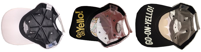 The right side of the caps aren’t utilized as well as the rest, with only one, the 2014 cap having GO ON YELLO! embroidered into it. While the 2010 cap has 2010 on the brim, and the 2016 cap has nothing.