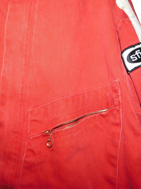 The left sleeve has a suspect SFI Certification patch, which indicates that the suit has a 1 rating. A 1 rating would provide the most minimal of protection. Normally, a 1 rated suit would provide 3 seconds of fire protection, but since this suit clearly isn’t made of Nomex, I doubt it would provide that much protection.