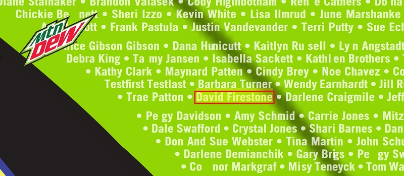 Also, when Dale Earnhardt Jr raced at his final race at Talladega, he had 100,000 names covering his car…including mine. My name was on the driver’s side near the back wheel well. I did get a pic of where it was.