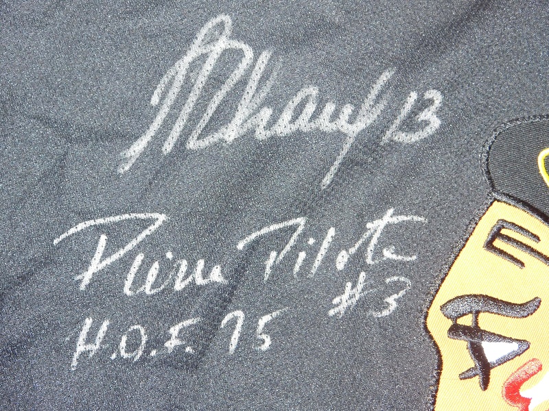 I also have a New York Rangers jersey signed by John MacLean and Pierre Pilote.