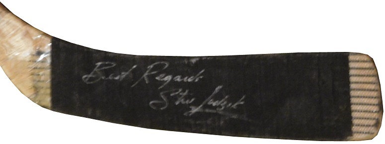 Playing with the Blackhawks from 1981 to 1989, Steve Ludzik was a mainstay on the roster. During his career, he also played for the Buffalo Sabres. At some point in his career, he used this Sher-Wood stick, which he autographed on the blade.