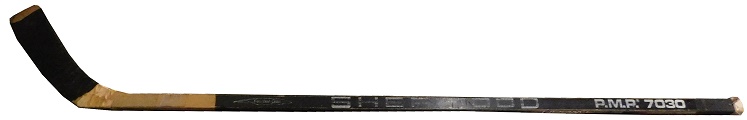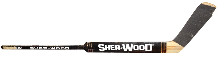 While Warren Skorodenski 35 game, 12 win and 11 loss record isn’t exactly memorable, he is known for having the highest save percentage in 1986-1987 while with the Chicago Blackhawks with a .903. During his time with the Blackhawks, he used this Sher-Wood stick, which shows nice use.