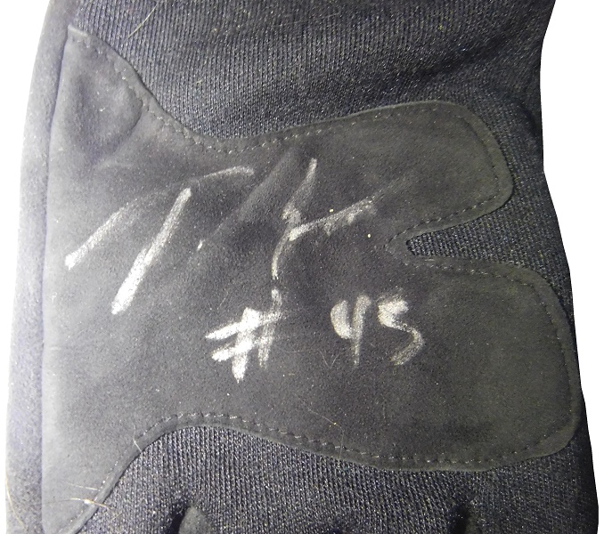 The second of the two gloves is identical, including wear patterns to the first glove, except that this glove has not been autographed.