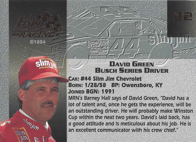 Mark Smith #72 Chevy Camaro-New scheme for 2018, black with red and white stripe across bottom. A