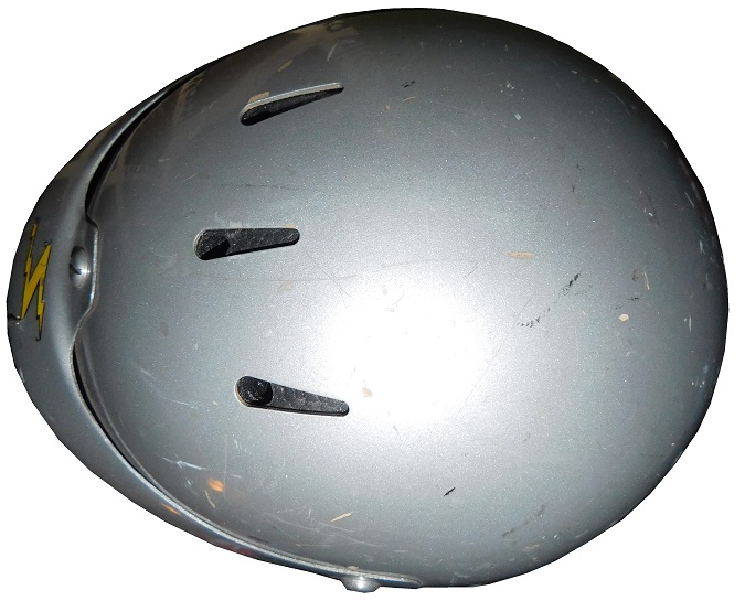 The top of the helmet has numerous scratches, scuff marks and chips.