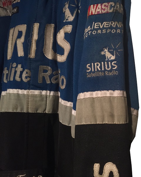 The left sleeve features a NASCAR logo, a ULTRA/EVERNHAM MOTORSPORTS logo, and a SIRIUS SATELLITE RADIO logo on the top, and SIRIUS at the end of the sleeve in television position.