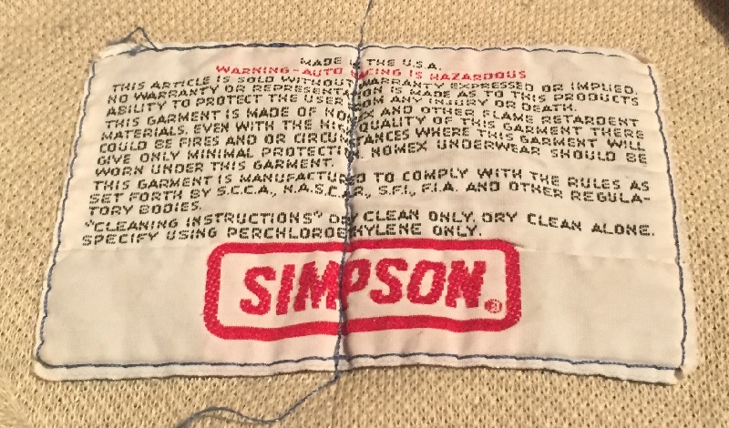 Inside the cowl is a standard Simpson warranty tag. There is no flags or other indications of any kind present.