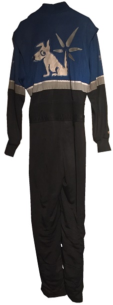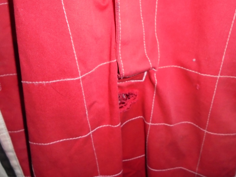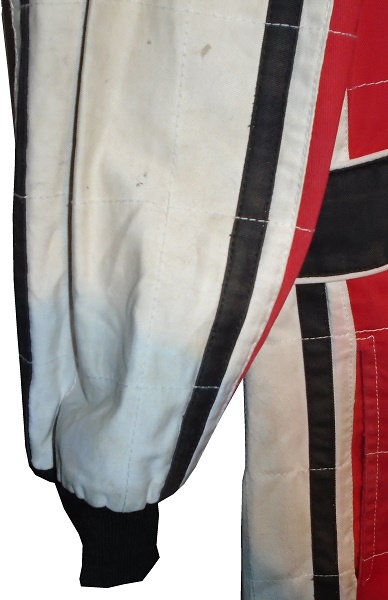 This Pyrotect SFI 1 rated suit shows a decent amount of wear, with tears and some stains.