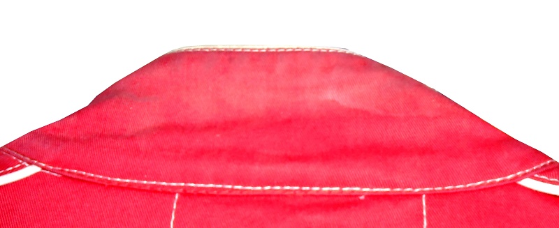 The Sirius dog is embroidered on the back, and there are a number of stains on the logo.