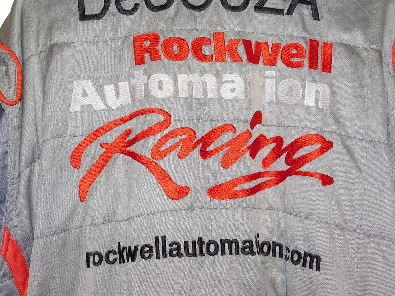 The back torso features a ROCKWELL AUTOMATION RACING logo, as well as ROCKWELLAUTOMATION.COM embroidered into it.