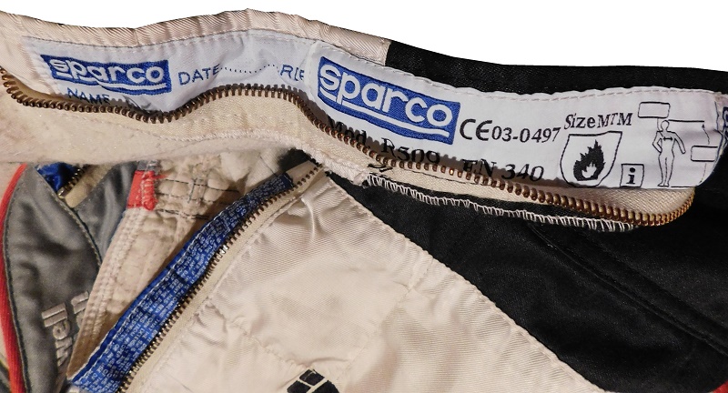 Inside the zipper on the front is the Sparco Warranty label, and the care tag.