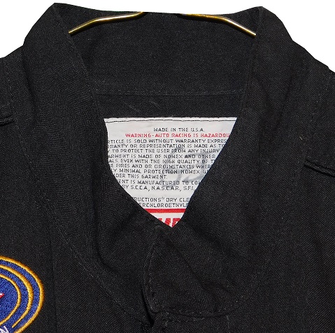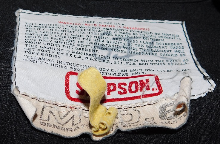 In 2003, Mike Harmon raced a number of races sponsored by The FanZCar. One of his crew members was Rodney Shearer, who passed away in 2017. He wore this well-worn Simpson double-layer firesuit for his time with GIC-Mixon, and the suit has been recycled. The suit shows heavy use with numerous stains and some fire discoloration.