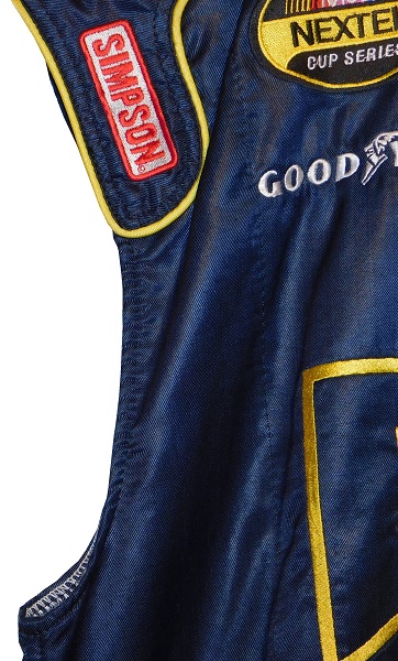 2006 would be a forgettable year for BAM Racing. Though they tried to start 33 races out of the 36 race season, they failed to qualify for 8 of them, and the ones that they did qualify for, they failed to even score a top 10. During some of those 24 races, a crew member wore this Simpson vest.  Issued to a crew member named R Benton, the vest shows light use.The collar has no logos on it.The old Simpson warranty label is sewn into the cowl, along with an identification tag stating that the vest is issued to R Benton. The right chest features a NASCAR NEXTEL CUP SERIES logo, a SIMPSON logo, and a GOODYEAR logo present.The left chest features a Dodge logo and an SEM logo.The front torso has a BAM RACING logo embroidered in white and yellow in the blue background material.The bottom hems don’t feature comfort straps. The shoulder epaulets feature Simpson logos, but are otherwise unadorned. The vest has standard arm holes. The back of the vest doesn’t show any real wear.The back of the neck is unadorned, but just below the neck, there is WWW.BAM49RACING.COM embroidered into it.The back torso features a SERTA logo above a BAM RACING logo.The vest project will go on, and I do plan on doing more vests in the coming months. I just hated doing vest after vest after vest. I do learn from these vests, and I do enjoy collecting them.