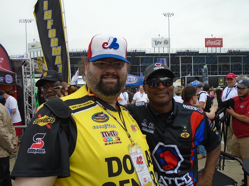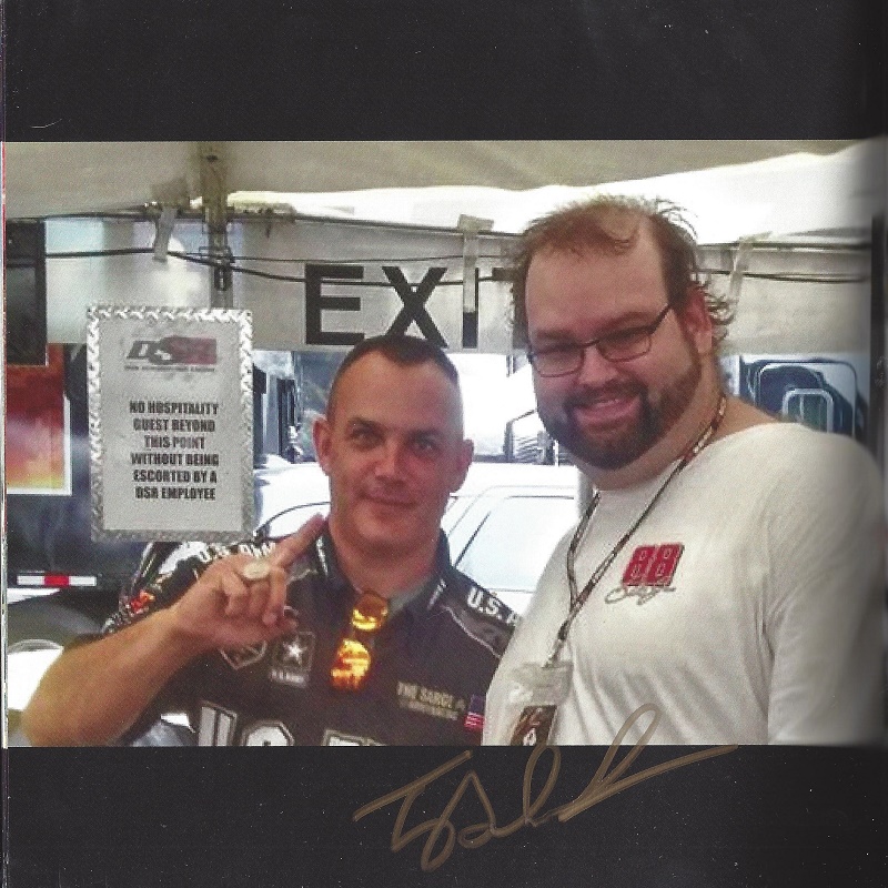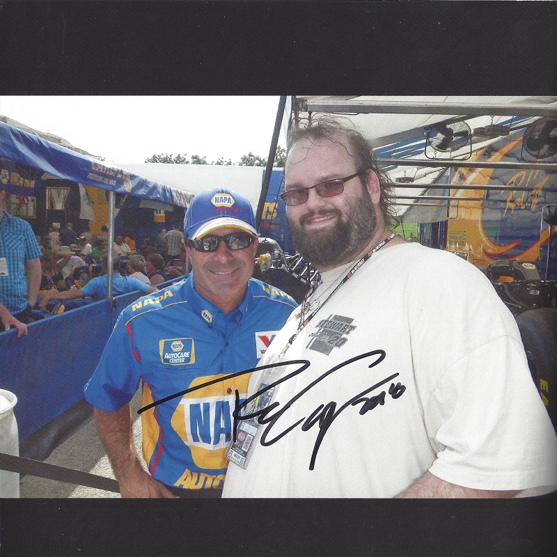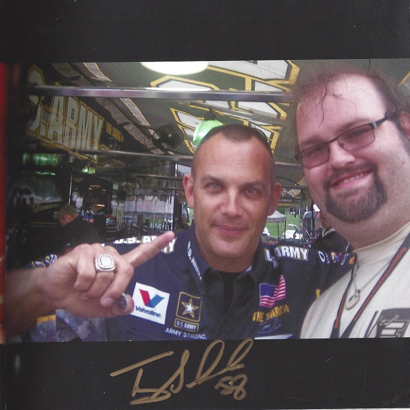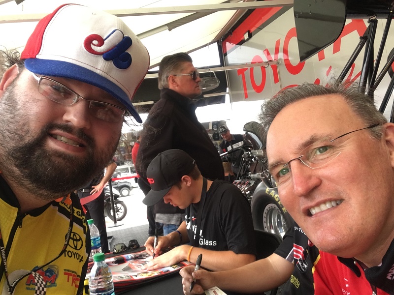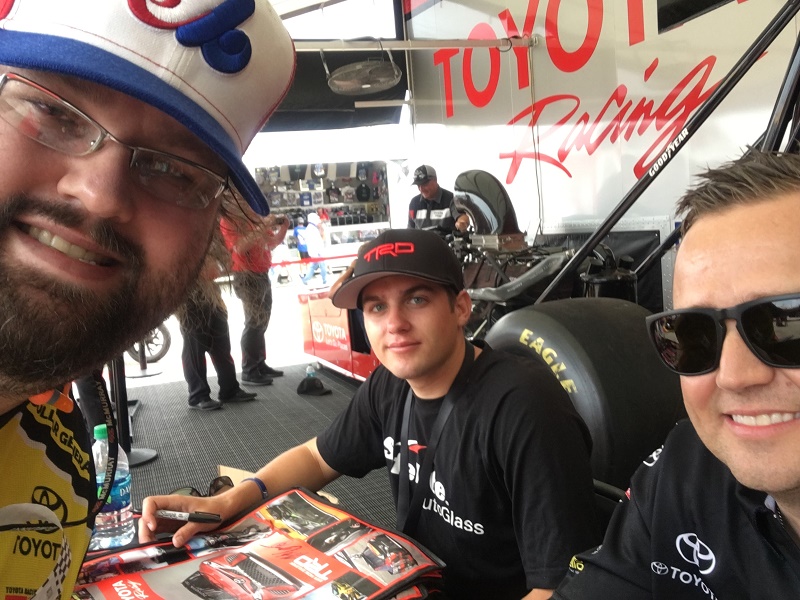 We arrived, and spent a lot of time wandering around the midway. We picked up a number of hero cards, and watched the crews work on these 11,000 horsepower engines. After a while, I got in line at the Toyota pavilion, and got autographs and selfies with Cruz Pedregon, Del Worsham, JR Todd, Shawn Langdon, Antron Brown, Doug Kalitta, Richie Crampton, and Noah Gragson. I then got in line for the Mello Yello autograph session, and got Deric Kramer, TJ Zizzo, Don Garlits, Barry Dyer, Larry Reyes, Jeg Coughlin Sr., and Ron Colson. In walking around the pits, I also got Angie Smith to sign a hero card, Tony Schumacher to sign my book, and Ron Capps to sign my book and my championship hat.