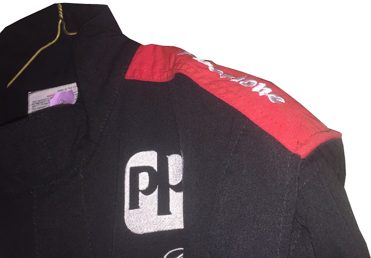 In 2014, BK Racing fielded 3 cars in the Cup Series. Tracy Duncan was the jackman for the #83. The #83 didn’t have any real success, failing to score even a top 10. During that season, Duncan wore this Oakley/Simpson mismatched two-piece suit. The suit shows decent use.