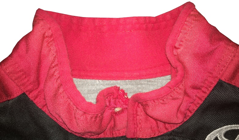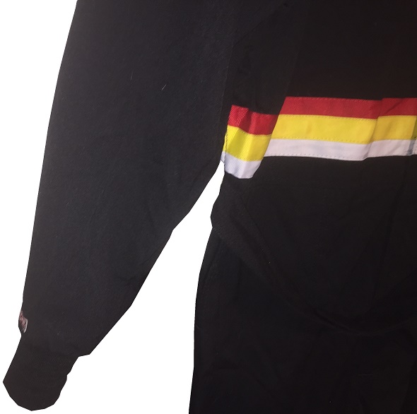 His best finish in the Indianapolis 500 was a 5th place finish in the 1999 event. He started 27th and worked his way up to 5th in his first Indy Racing League start. One of his pit crew members wore this uncertified, single-layer suit. The suit was worn for 7 of the 10 1999 races, and may have been recycled in 2000. It shows light wear.The Velcro collar is unadorned.The standard Simpson warranty label is in the cowl. There is a small flag tag with the XL size indication. There is a tag pinned to the warranty label that reads “38847.”The right chest features an INDY RACING LEAGUE logo, and a SIMPSON logo present.The left chest features a PPG logo and an OLDSMOBILE logo embroidered.The front torso features a large ENERGIZER ADVANCED FORMULA logo embroidered.There is a black belt underneath the red and yellow stripe below the front logo. The belt is unadorned.The legs have standard cuffs, and are unadorned.The shoulders feature red epaulets with FIRESTONE logos embroidered. The right sleeve features an Energizer Bunny logos embroidered, with nothing in television position. The left sleeve features an Energizer Bunny logo and a SIMPSON embroidered, with nothing in television position. The back of the suit doesn’t show any wear.The back of the neck is unadorned.The back torso features an ENERGIZER ADVANCED FORMULA logo embroidered.With that, I present another edition of…