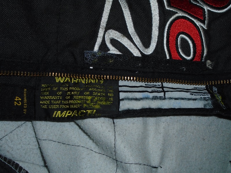 Inside the zipper is the Impact warranty label, and identification tag, which is unadorned, but shows wear from Velcro.