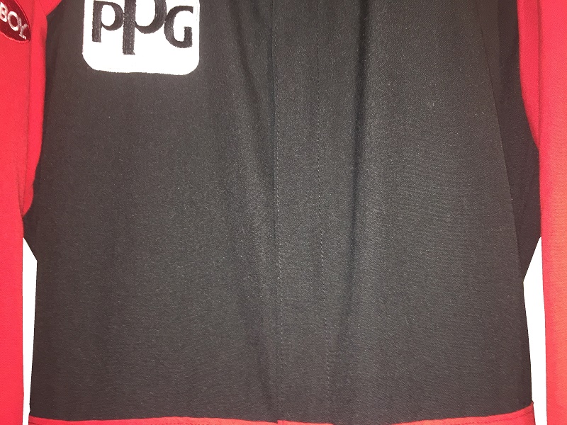 During the 1998 season, the car ran a partial schedule in the IRL season, with two drivers, Roberto Guerrero and Stevie Reeves. They scored a top 10 at Charlotte, but didn’t really do much otherwise. In 1999, Jeff Ward took over, and the team had two second place finishes, one at Phoenix and one at the Indy 500. They also had two top 10’s, one at Pikes Peak, and the other at Las Vegas. During those seasons, a crew member was issued this Bell single-layer firesuit. The suit is in good condition, showing light use.